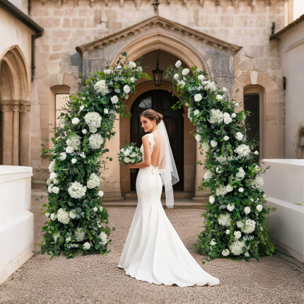 GNW Wholesale Artificial Silk White Wedding Horn Flowers Arch Flowers Arrangement Arch Wedding Artificial Flower Arch Set