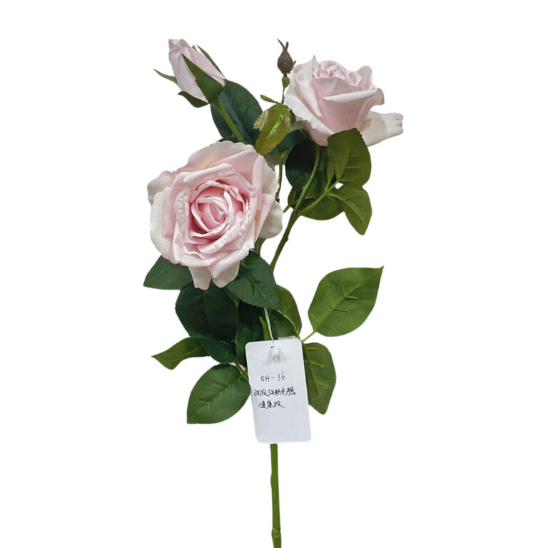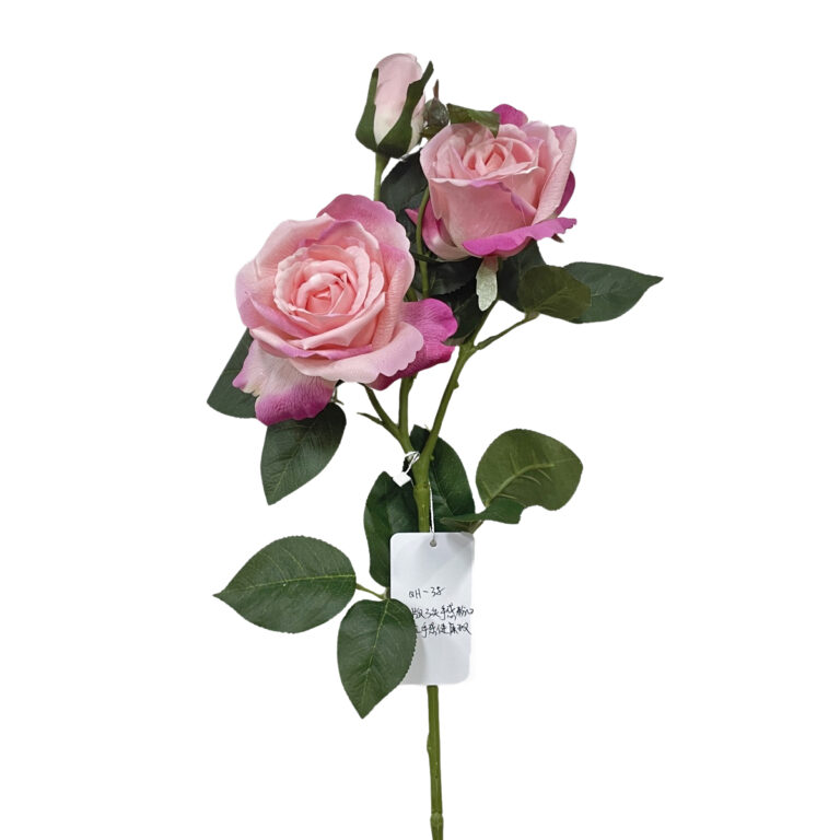 GNW Pink Artificial 3-head Garden Rose Real Touch QH-36