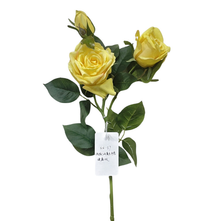 GNW Yellow Artificial 3-head Garden Rose Real Touch QH-37