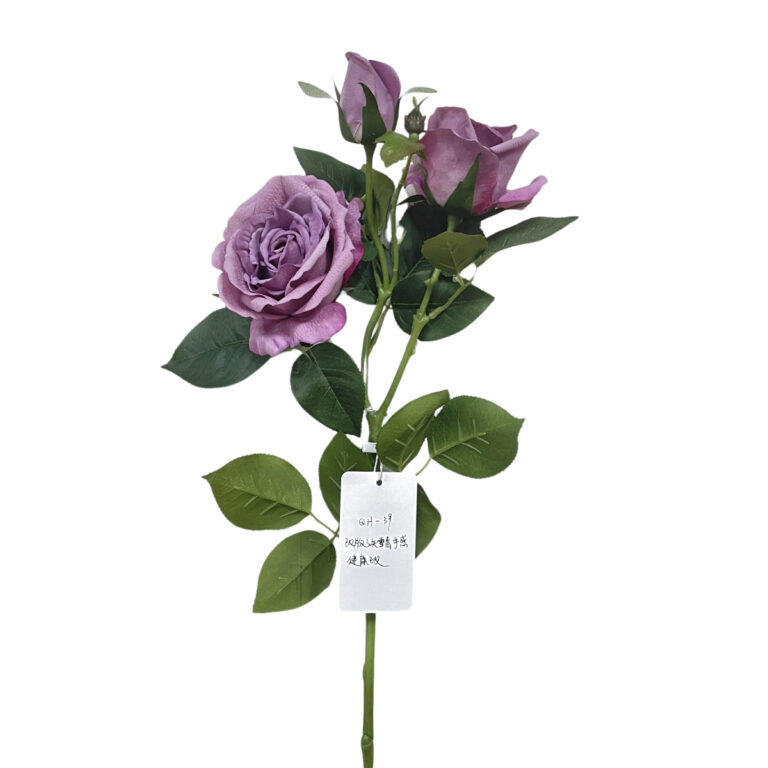 GNW Purple Artificial 3-head Garden Rose Real Touch QH-39