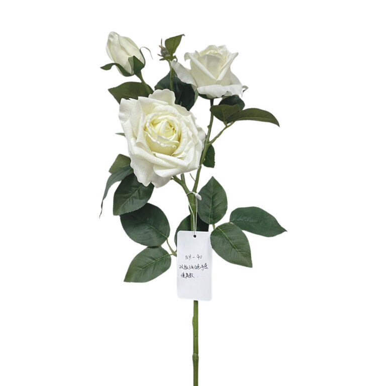 GNW White Artificial 3-head Garden Rose Real Touch QH-40