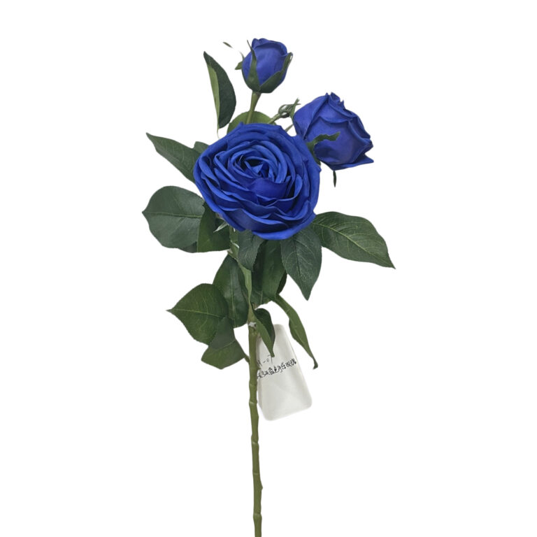 GNW Blue Artificial 3-head Garden Rose Real Touch QH-07