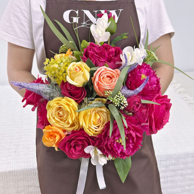 GNW Fuchsia Artificial 5-head Wedding Rose Sticks Real Touch SG-35