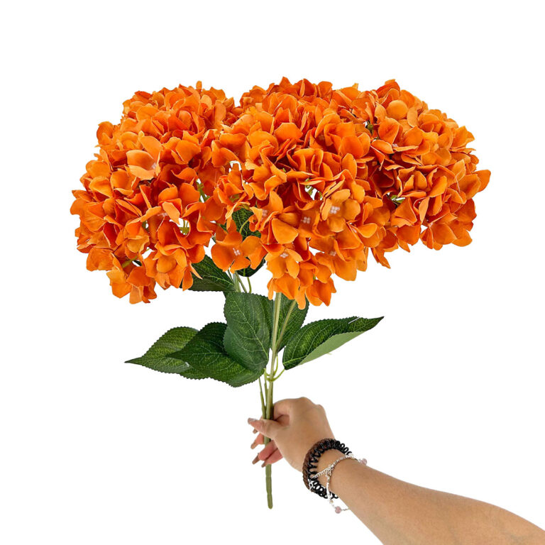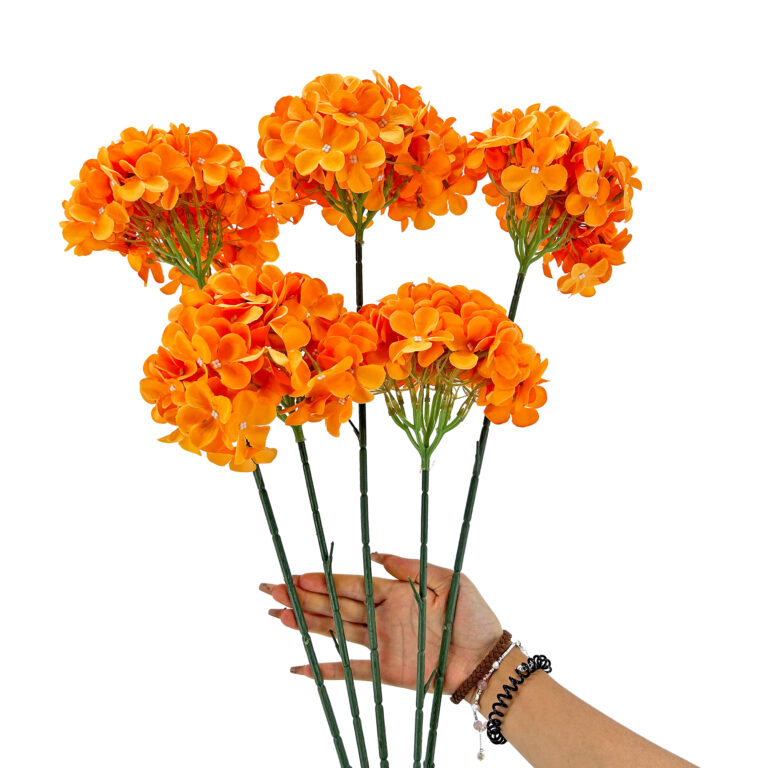 GNW Bright Orange Artificial Floral Hydrangea Silk LRR-373