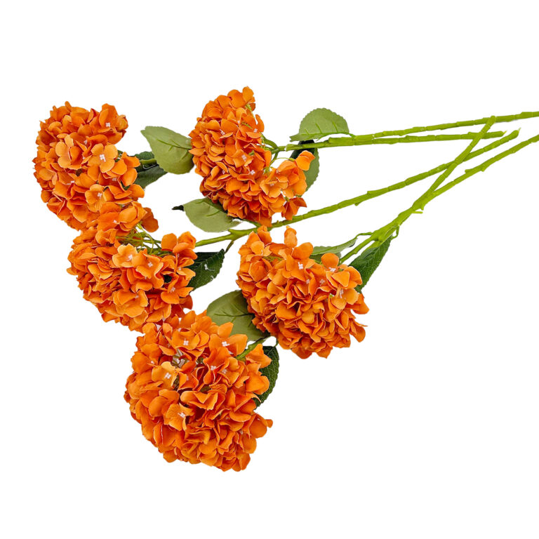 GNW Drak Orange Artificial 5-head Single Hydrangea Silk LRR-475