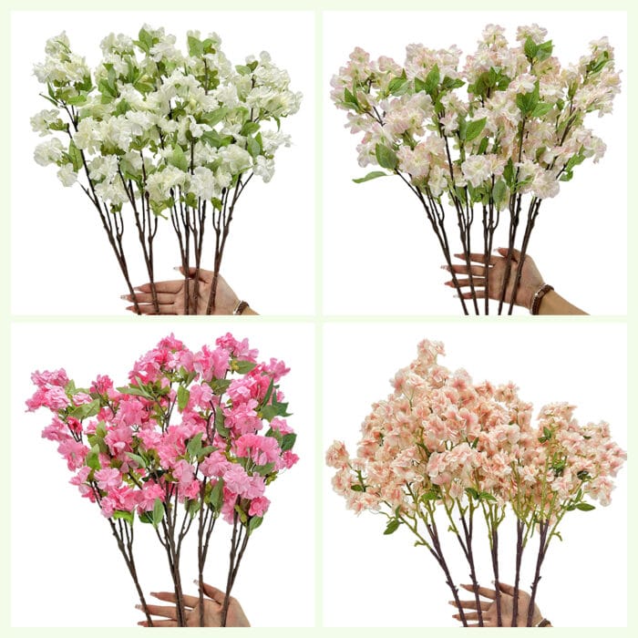 Yes. The artificial silk flowers and faux leaves are UV-resistant and suitable for outdoor use. However, we recommend avoiding direct rain exposure, as some parts of the trees contain real wood, which may develop mold if soaked. After use, please move the trees indoors for storage.