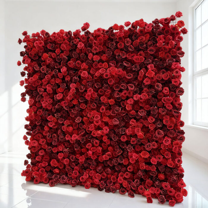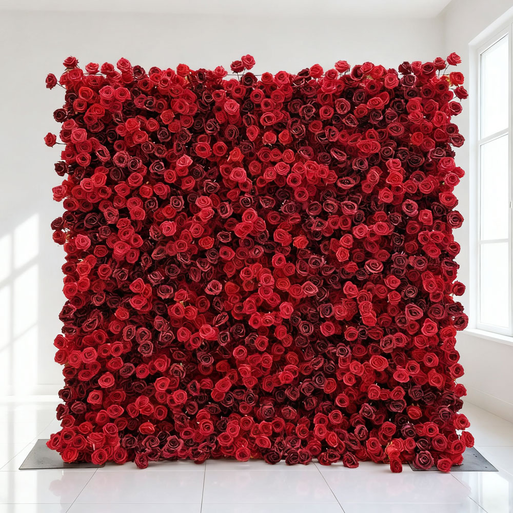 Customized Wedding Decoration Roll Up 5D Fabric Flower Wall Backdrop Artificial Silk Red Rose Flower Wall