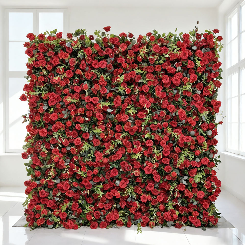 Decorative Cloth-based Flowers Wall Panels Red Roses Artificial Decoration Wedding Flower Wall Backdrop