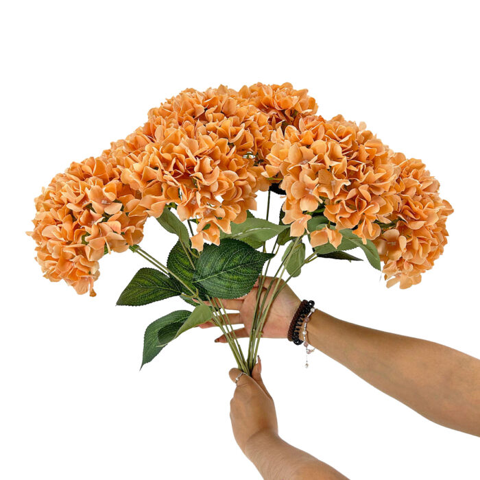 GNW Brown Artificial 5-head Single Hydrangea Silk LRR-473