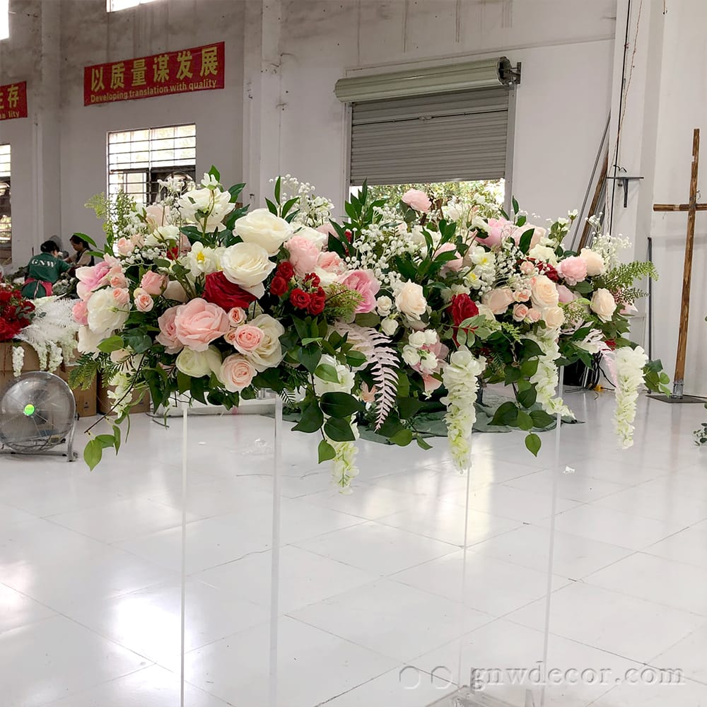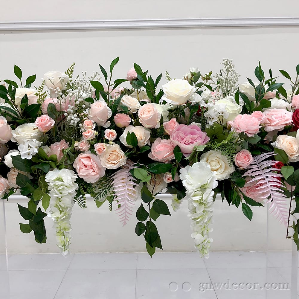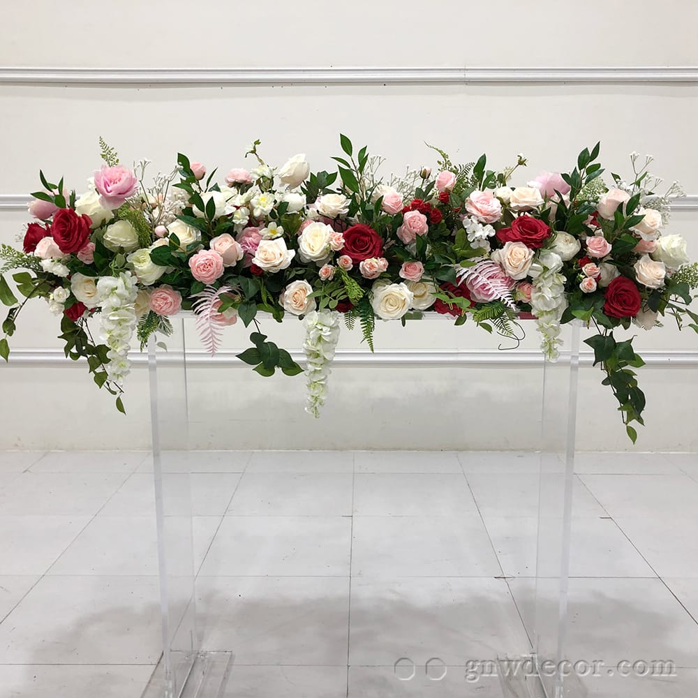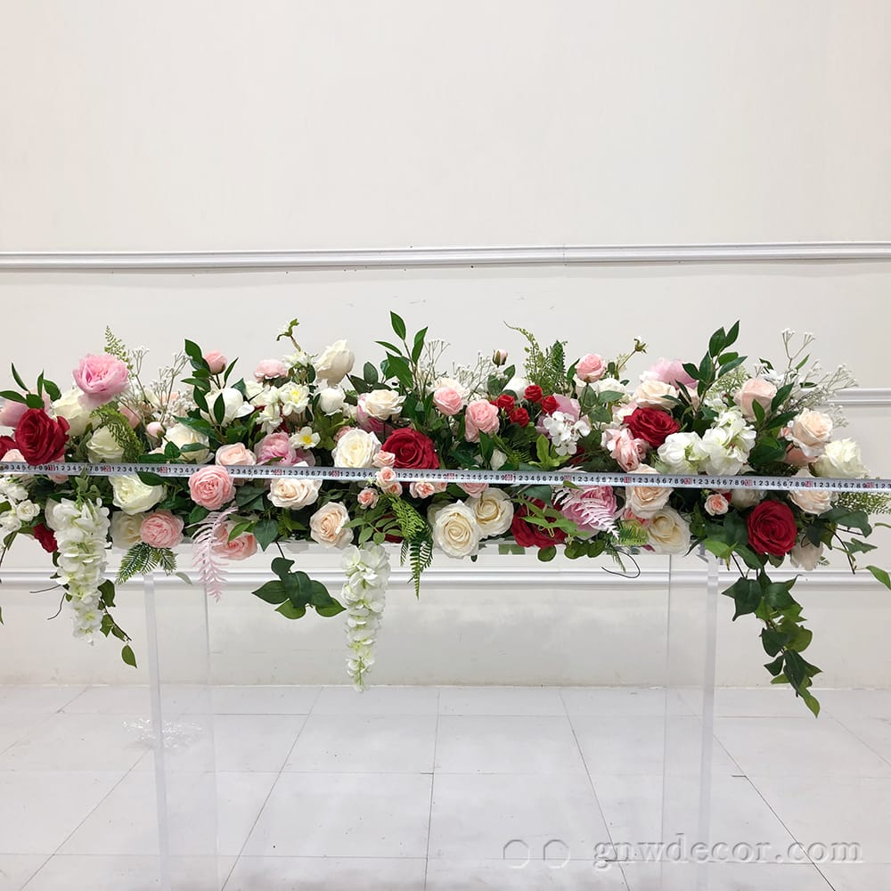 GNW Colorful Rose Artificial floral arrangement flower table runner decorated for premium floral weddings