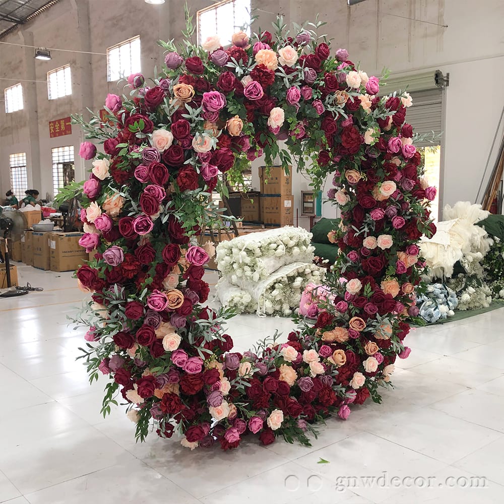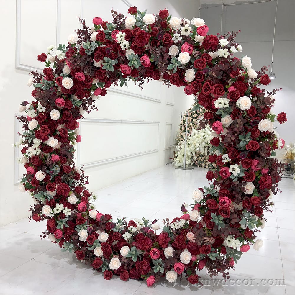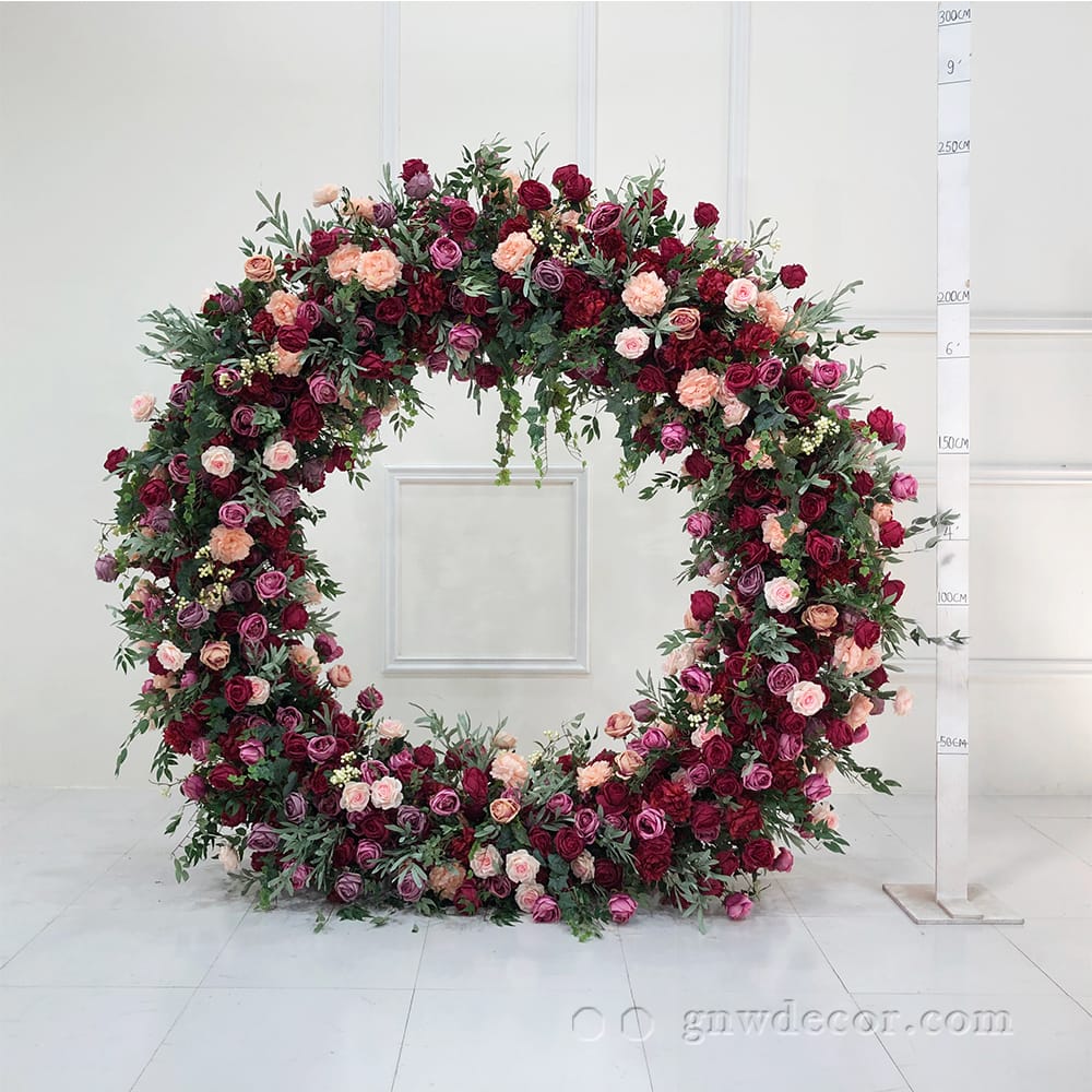 GNW Factory Wholesale High Quality Round Artificial Flower Wedding Arch for Wedding Event Backdrop Stage Decoration
