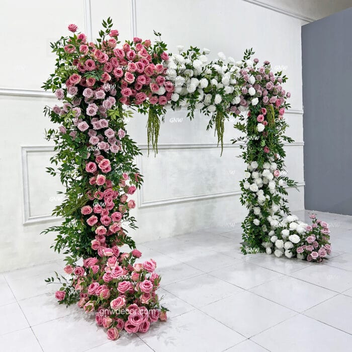 GNW Latest Custom Made Design Colorful Rose Square Flower Arch for Decorations Wedding Stage Flowers Backdrop