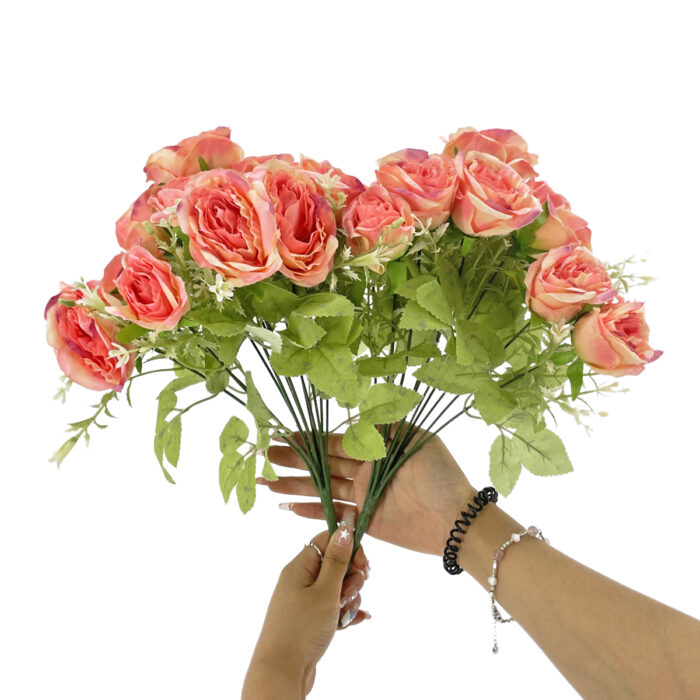 GNW Peach Pink Artificial 12 heads Small Spray Roses TN-15