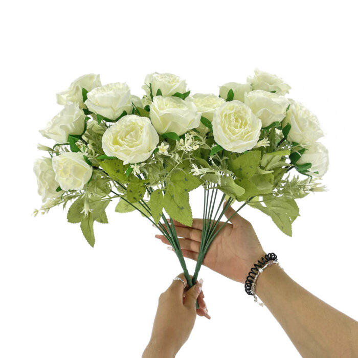 GNW White Artificial 12 heads Small Spray Roses TN-12