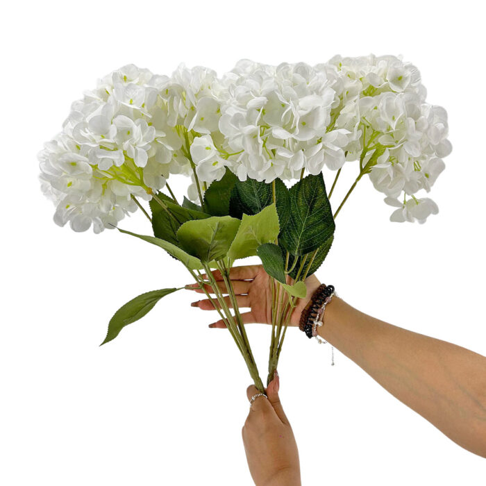 GNW White Artificial 5-head Single Hydrangea Silk LRR-488