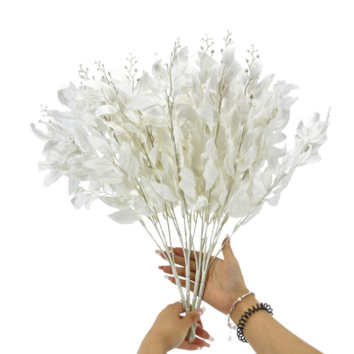 GNW White Artificial Bunch Of Willow Leaves MY-244
