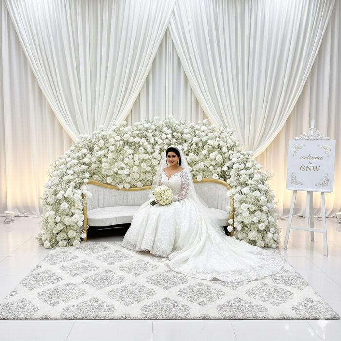 A well-decorated stage enhances the beauty of the wedding venue, making it look elegant and dreamy. Flowers add softness and warmth, perfect for capturing unforgettable photos.