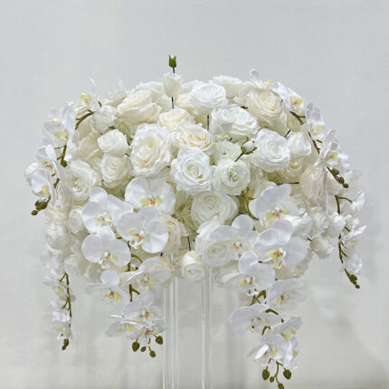 GNW White Roses Orchid Table Flower Centerpiece Wedding Backdrop Flower Ball for Event Party Backdrop Decor